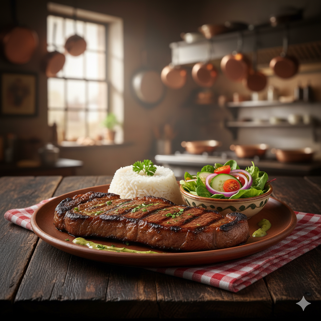 corte tierno y jugoso, perfectamente sellado a la parrilla para un sabor ahumado.